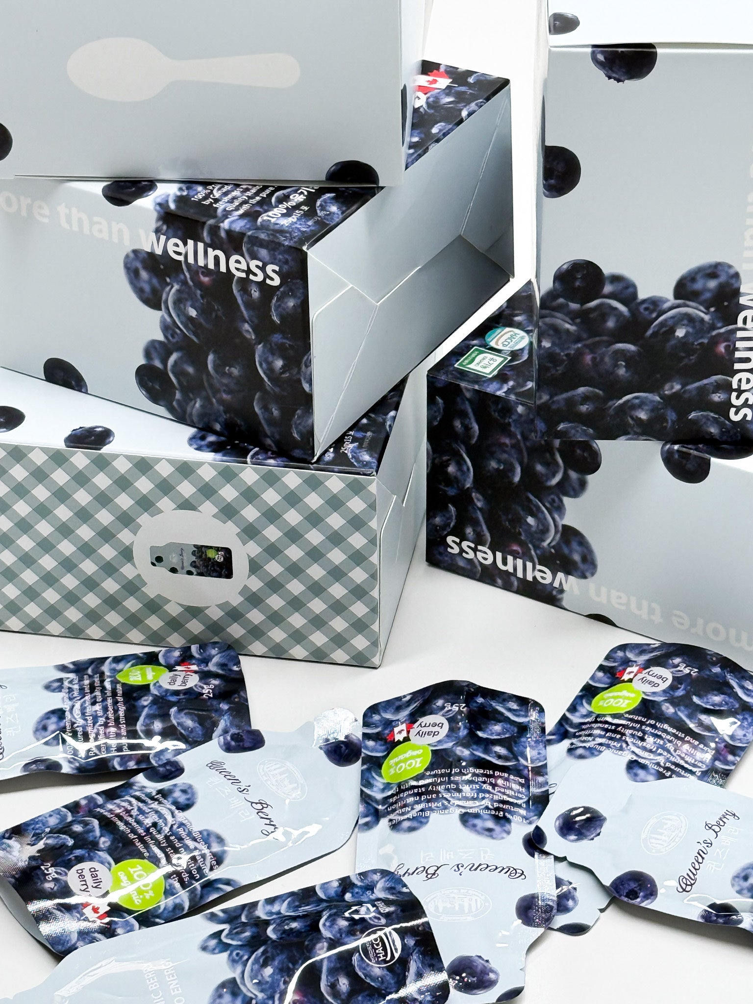 퀸즈베리는 영양소 파괴 없이 먹을 수 있답니다 오기닉 인증으로 농약 비료 하나도 사용하지 않았고 항산화 성분 (안토시아닌, 폴리페놀)은 착즙 공정으로 농축해서 일반 생과보다 집중 섭취시 효과가 커요! 보관도 쉽고, 매일 블루베리를 챙길수 있다는 장점이 있습니다!